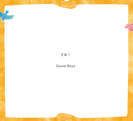 昨年RSRの楽屋で初めてちゃんと喋った時、なぜかそのまま3時間ほど交互に歌い合う展開になり意気投合した漢、向井秀徳率いるZAZEN BOYSが、永きに渡って親しまれて来た大名曲「赤とんぼ」を他のどのバンドにも金輪際不可能な形で激熱カバー。おまけとして「東京節」の動画と、朱と黒の筆で書き下ろされた歌詞&ジャケットイラスト画像入り。この2曲、来たる5/5にZAZEN BOYS×坂田明×近藤等則×七尾旅人という面子で演奏予定。共に歌いましょう。そして踏み出したい。(by七尾旅人)