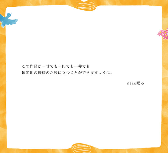梅雨が明けた。夏祭りの季節が到来です。みんなが一番好きなダンスバンド、neco眠る。震災直後に受け取ったnecoからの一本の電話を、僕はずっと忘れられないだろう。ライブ盤としてリリース予定だったこの大切な音源を、無償で僕に託してくれた。極度の緊張状態におかれた東日本にあって、スピーカーから溢れ出した特別なグルーヴが、ゆるやかに着地させてくれた。そうだ、もう一度、リズムと共に、この夏、何かを変えてしまいたい。森くん、neco眠るが再び動き出したら、一緒に東北へ行こうね。(by七尾旅人)